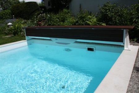 Die Filtertechnik befindet sich in einem Schacht an der Stirnseite des Schwimmbeckens.